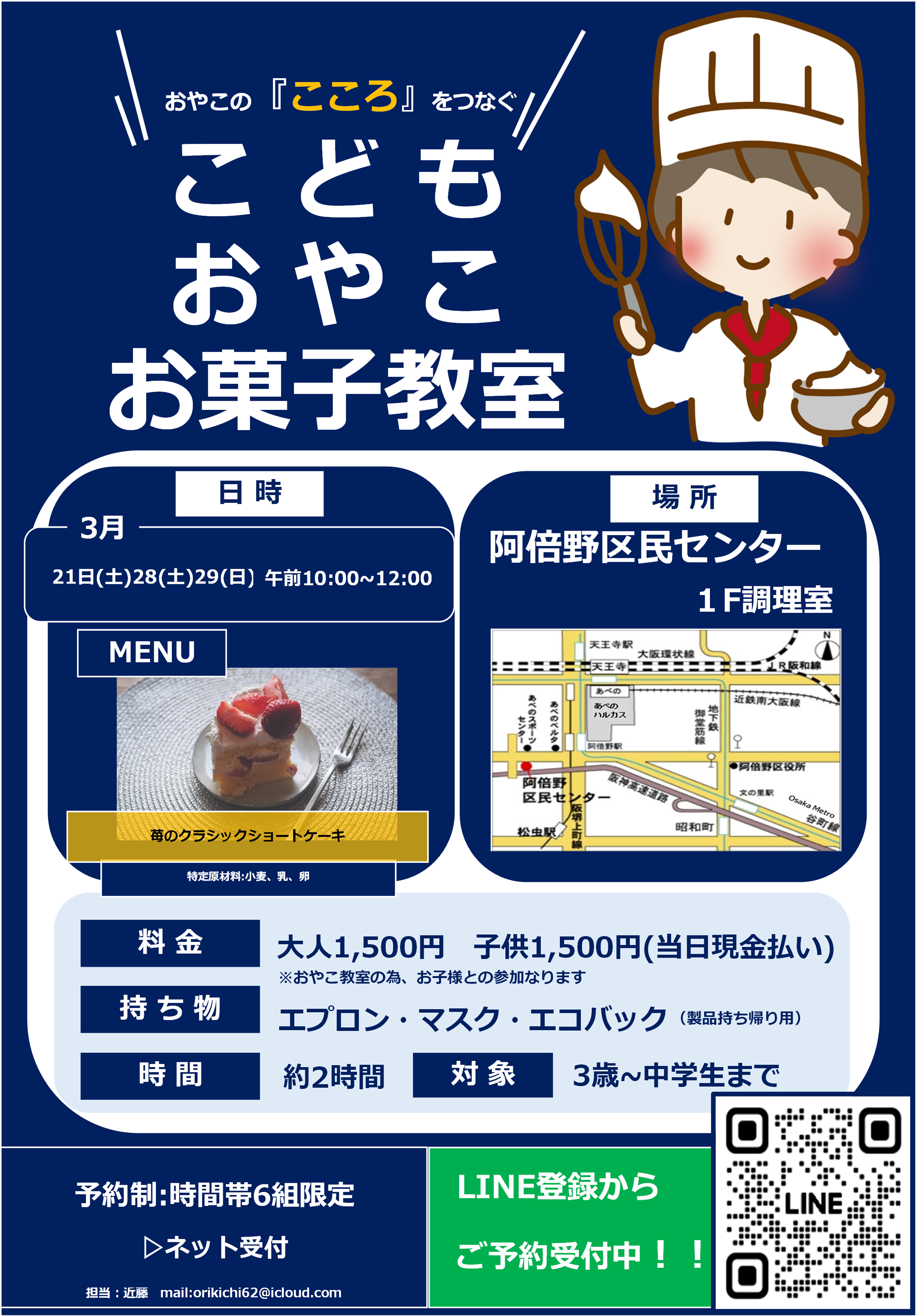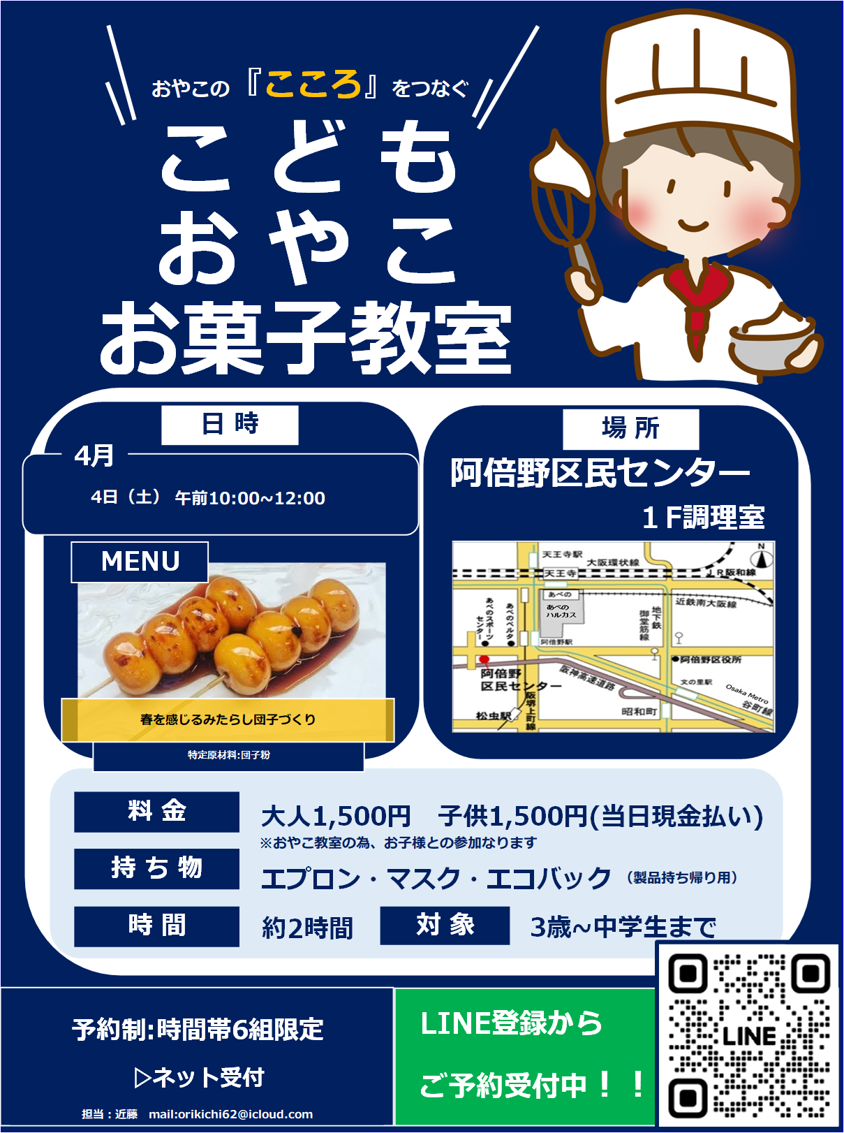 大阪市立阿倍野区民センターでおやこお菓子教室を実施