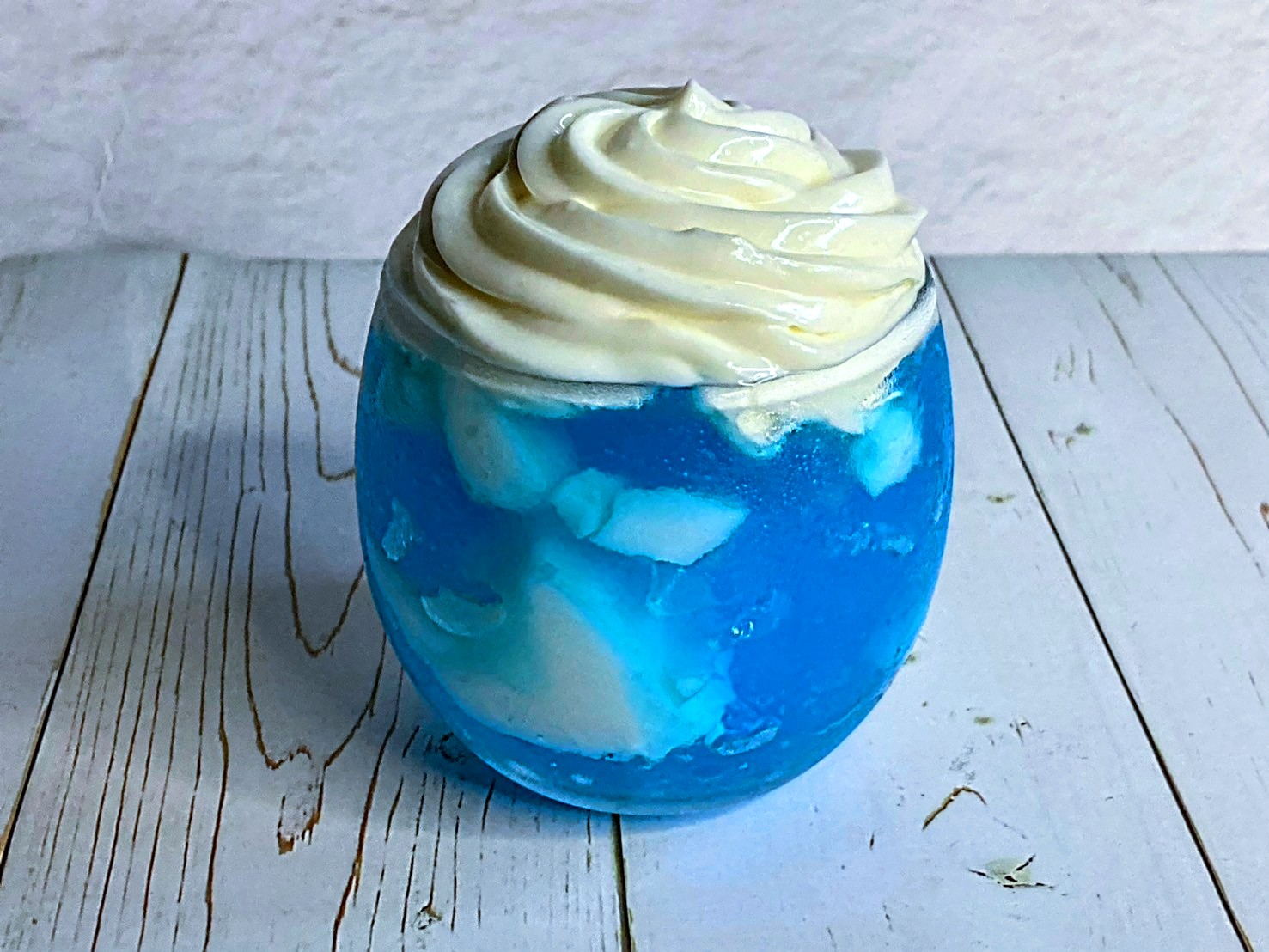 作り方も非常にシンプルで、透明なゼリーにかき氷のシロップ(ブルーハワイ)を加え作ります。ゼリーを固め、その後お好みのフルーツ・生クリームで飾り付けるだけで完成となります。このゼリーの良い点は、初心者でも簡単に作れます。そして、華やかなのに手間が少ない点が非常に魅力です。